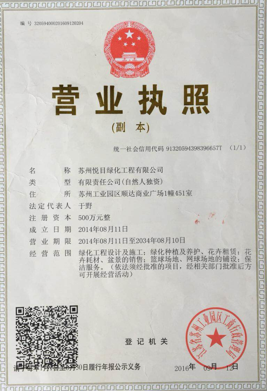 - 悅目綠化為蘇州長期合作的500多家中外企事業(yè)單位、酒店、 及蘇州知名企業(yè)提供植物租賃、綠化養(yǎng)護(hù)和鮮花花藝服務(wù)。 多年評為“城市園林綠化重點企業(yè)”。